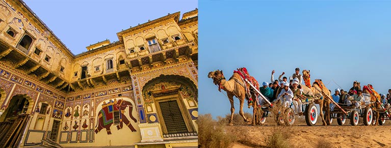 Tour the magnificent Jaisalmer Fort and intricately carved havelis like Patwon Ki Haveli. In the evening, experience folk music, dance, and dinner in a desert camp.
